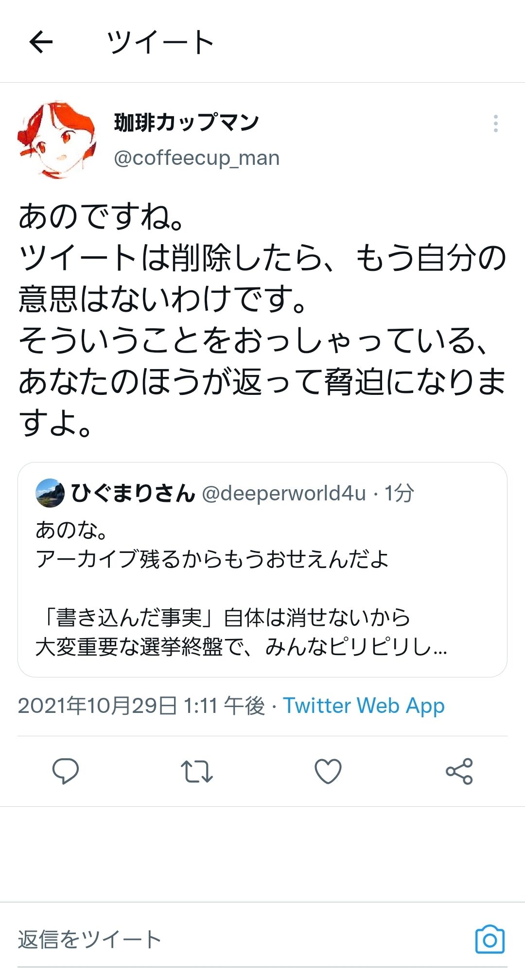 ツイートは削除したら、もう自分の意思はないわけです。