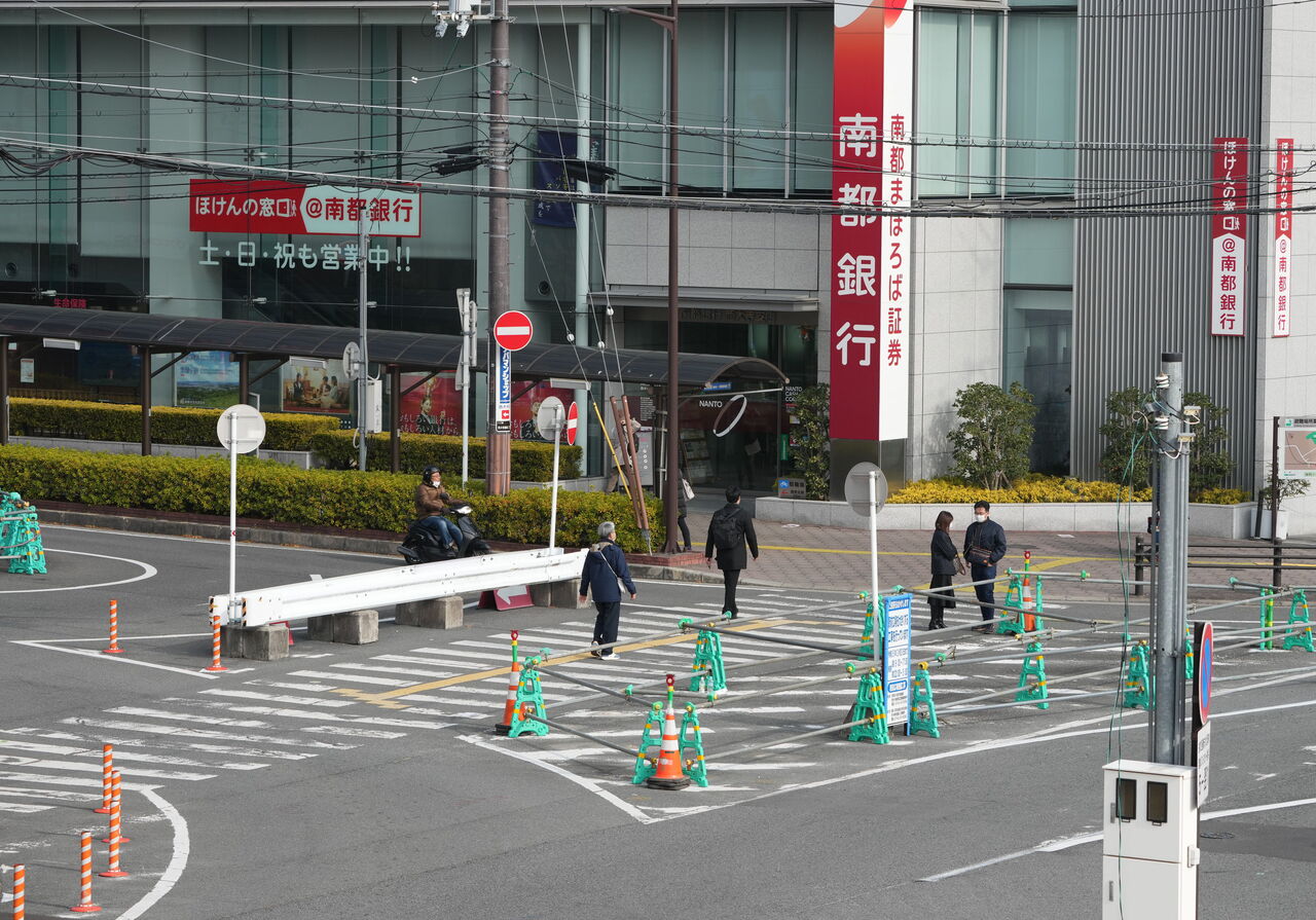 現場は近鉄大和西大寺駅北側のガードレールに囲まれた一帯。以前から道路整備工事の対象で、工事本格化を前に昨年12月にはガードレールが撤去された。